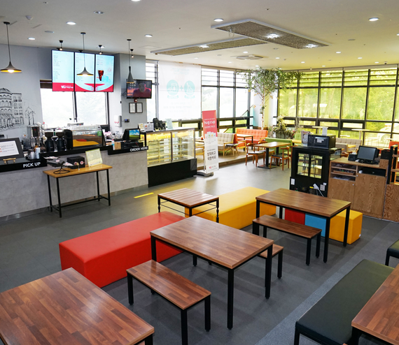 있으며, 가정에서도 향긋한 커피를 즐기실 수 있도록 시그니쳐 블렌딩 원두와 드립백을 구입하실 수 있습니다